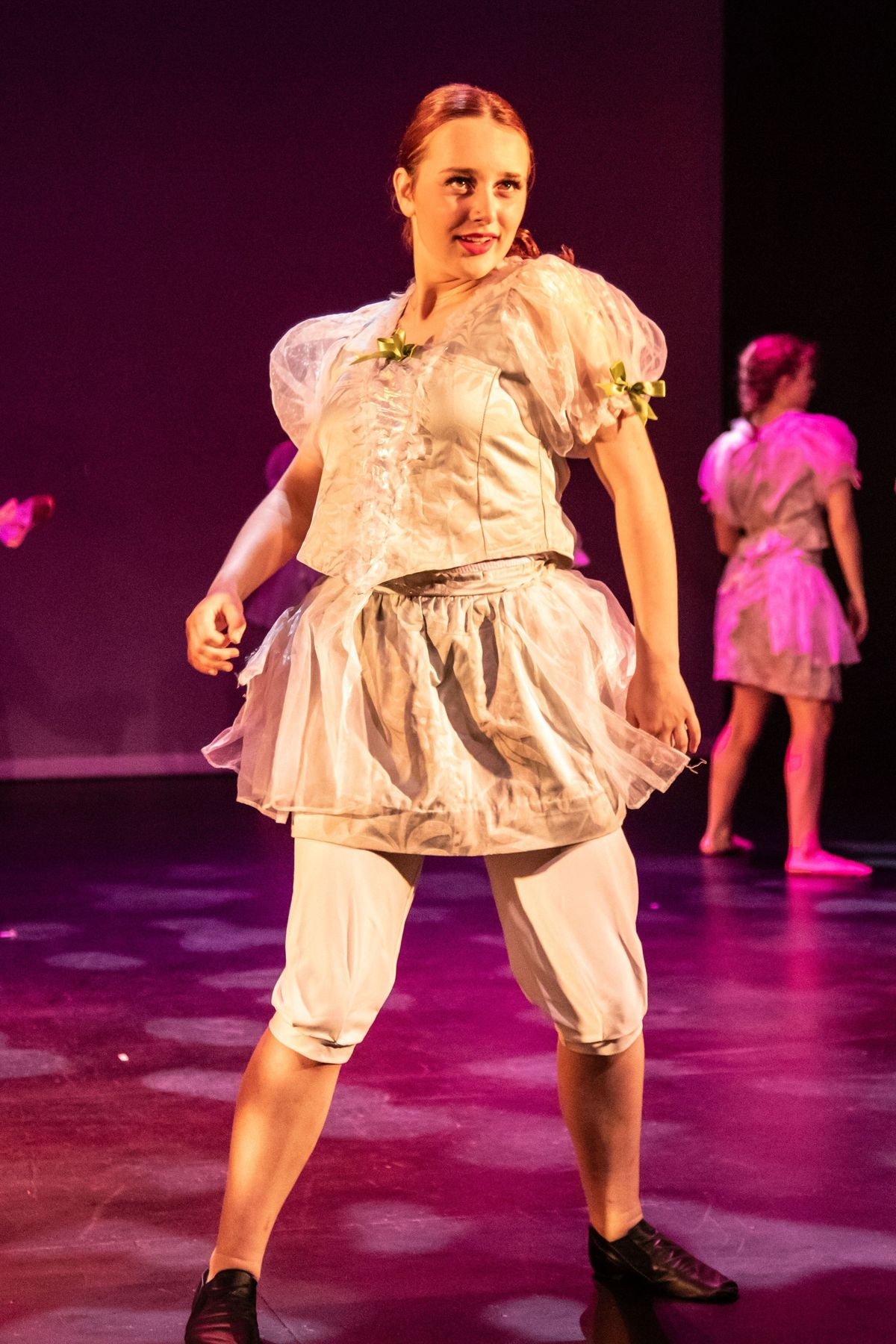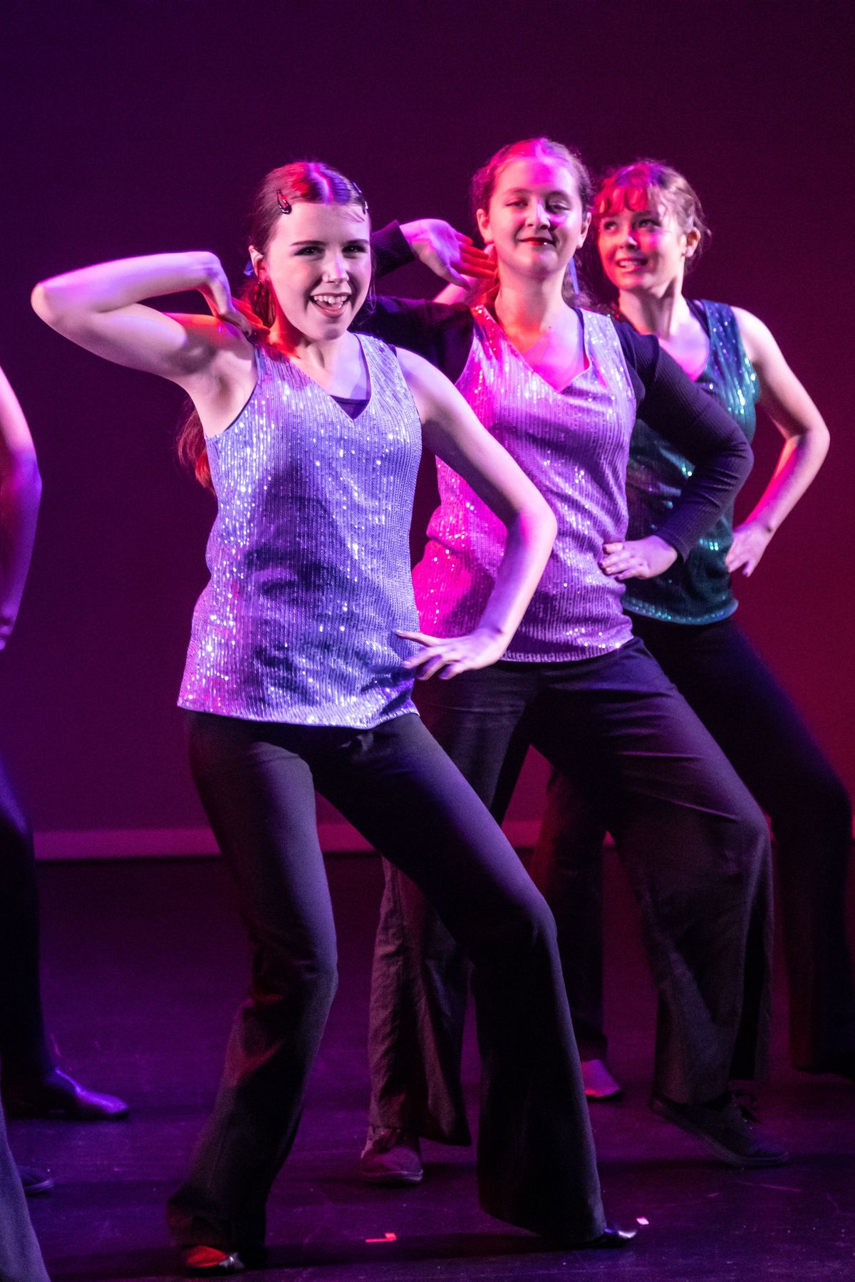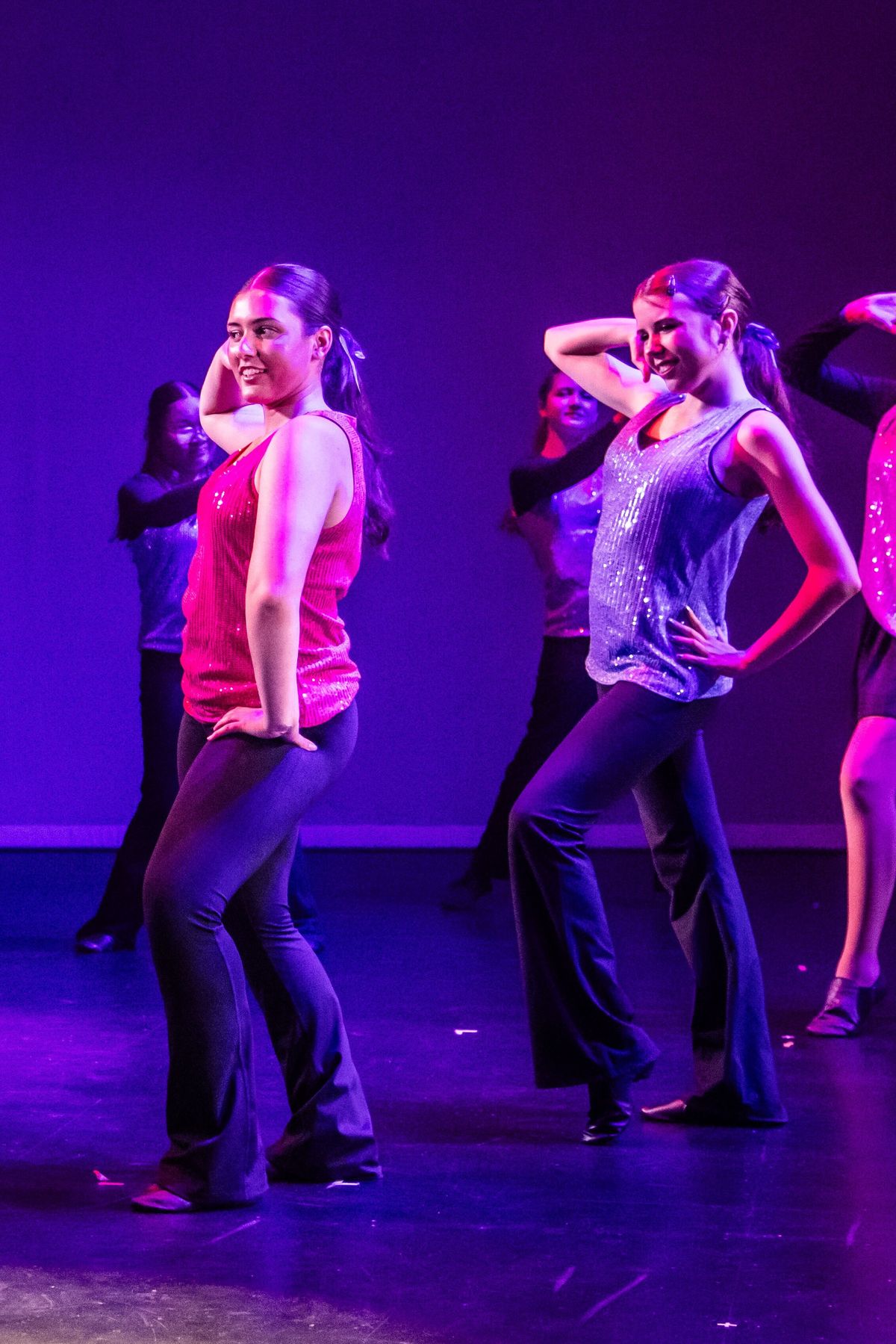 Maddison J and Rosie H showcased strong technique and stage presence in the Jazz routine, contributing to a polished and vibrant performance.